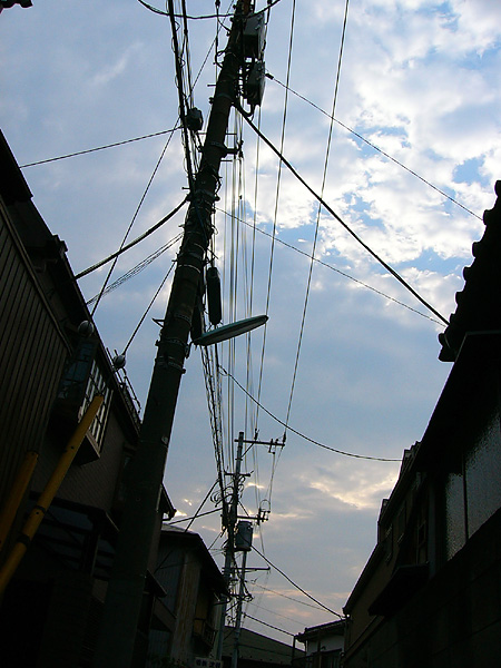 お店に寄り道した後、細い通路からの空。