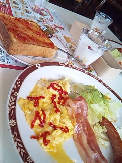 って事でお腐れ会、会場ファミレスにてモーニング注文。
