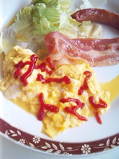 スクランブルエッグと、ヴルストと、サラダと、トーストと、ヨーグルト。